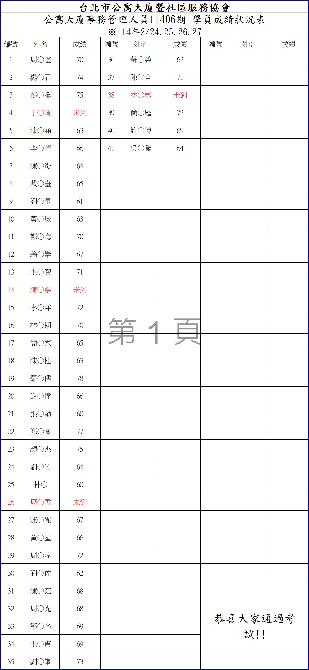 事務初訓成績11406期