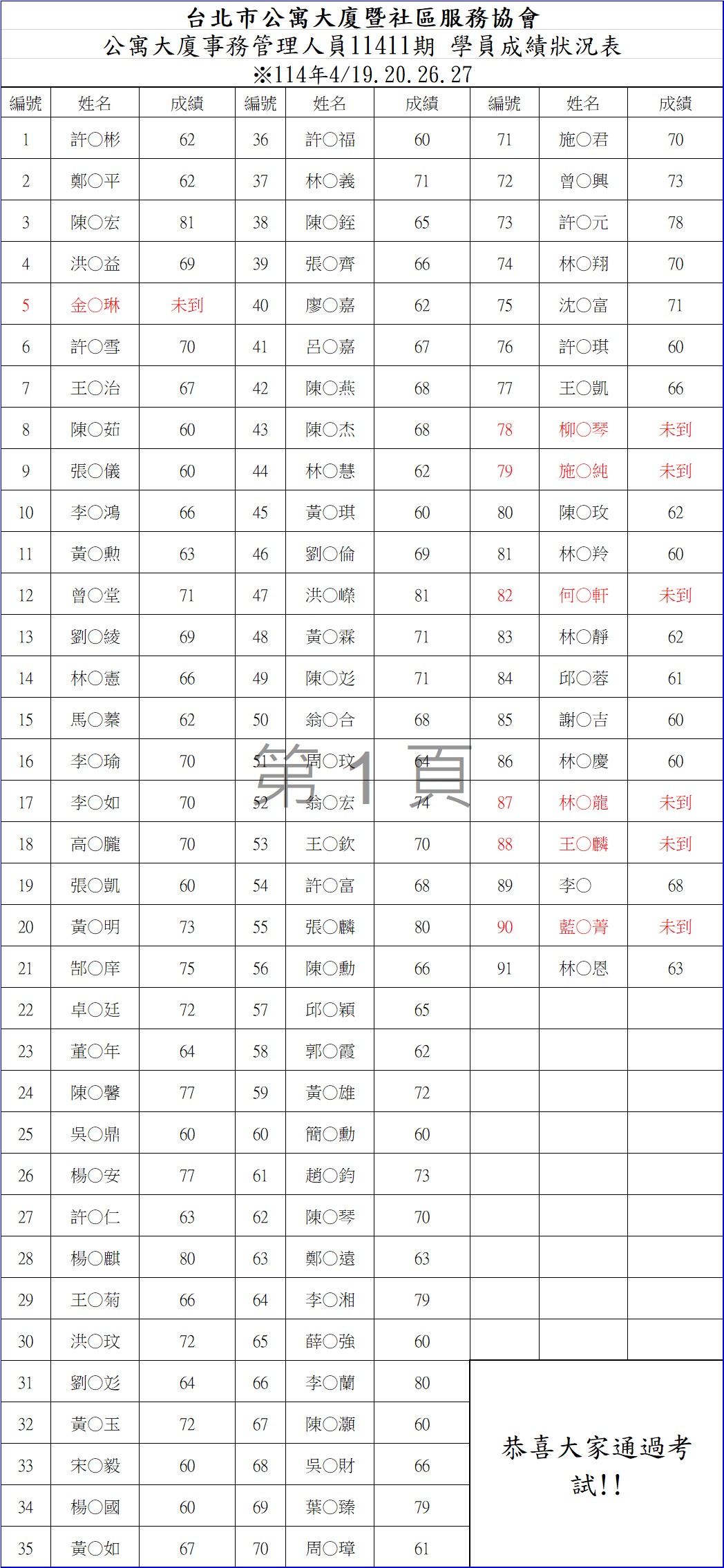 事務初訓成績11411期