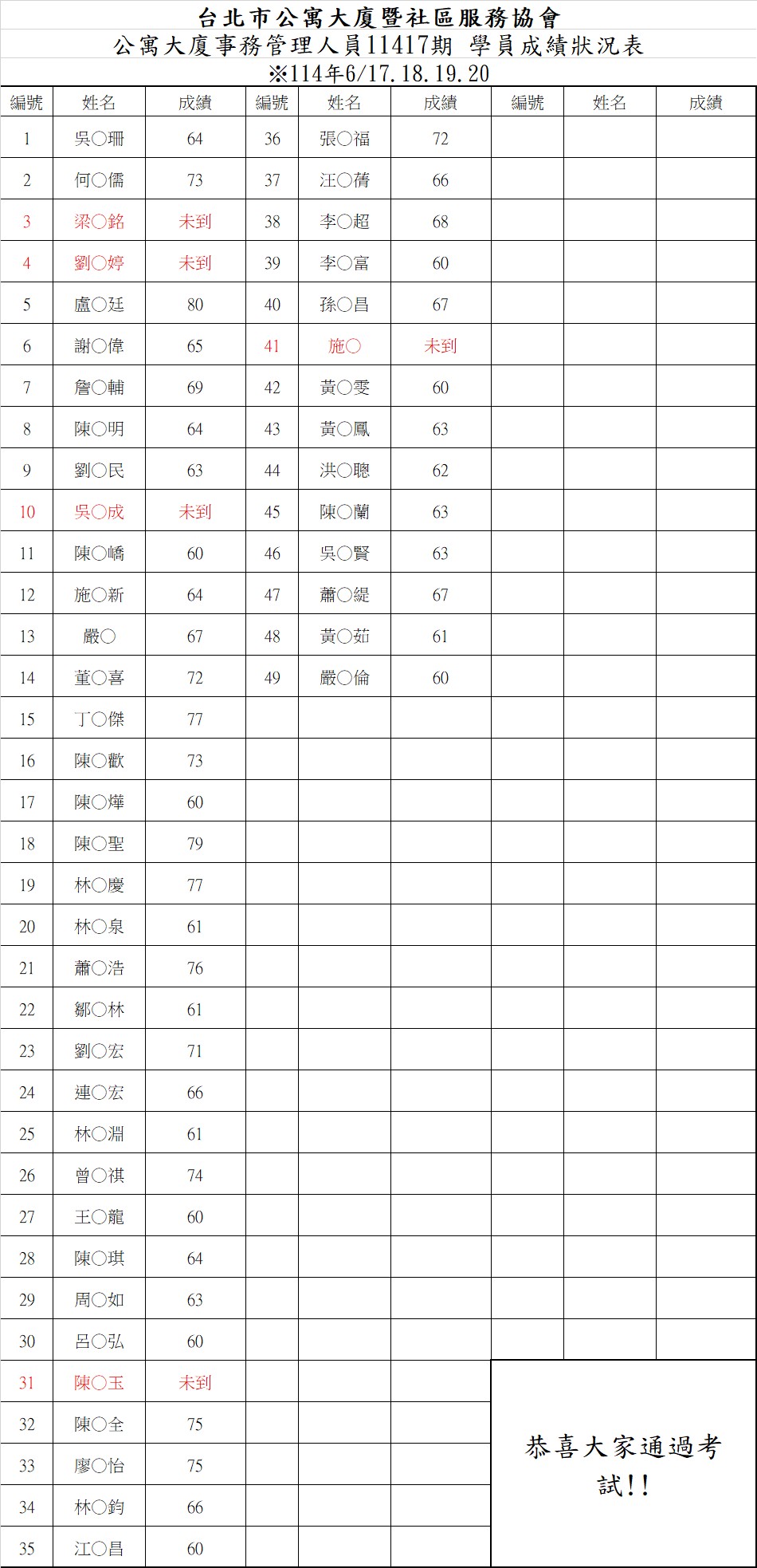 事務初訓成績11417期