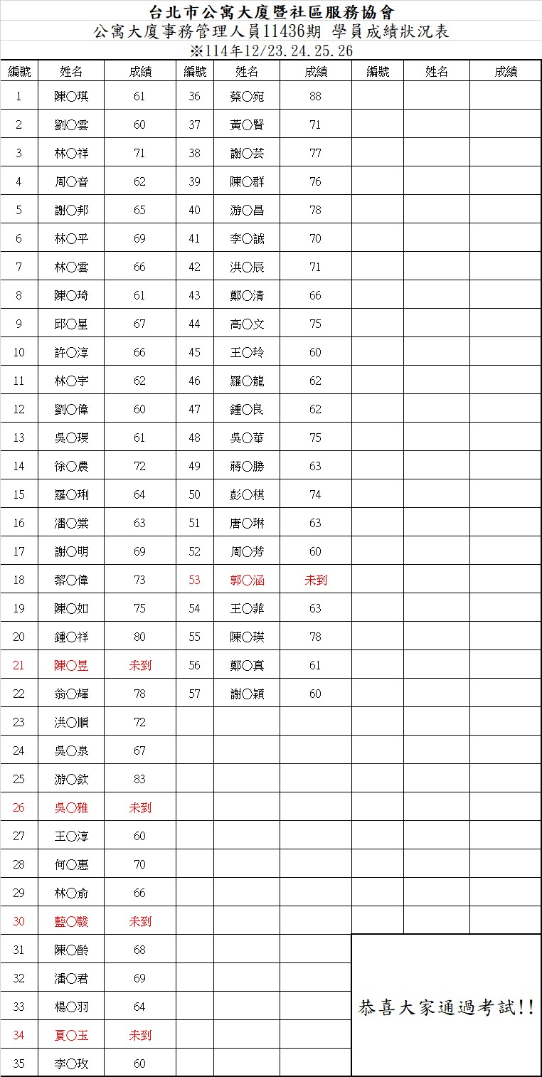 事務初訓成績11436期