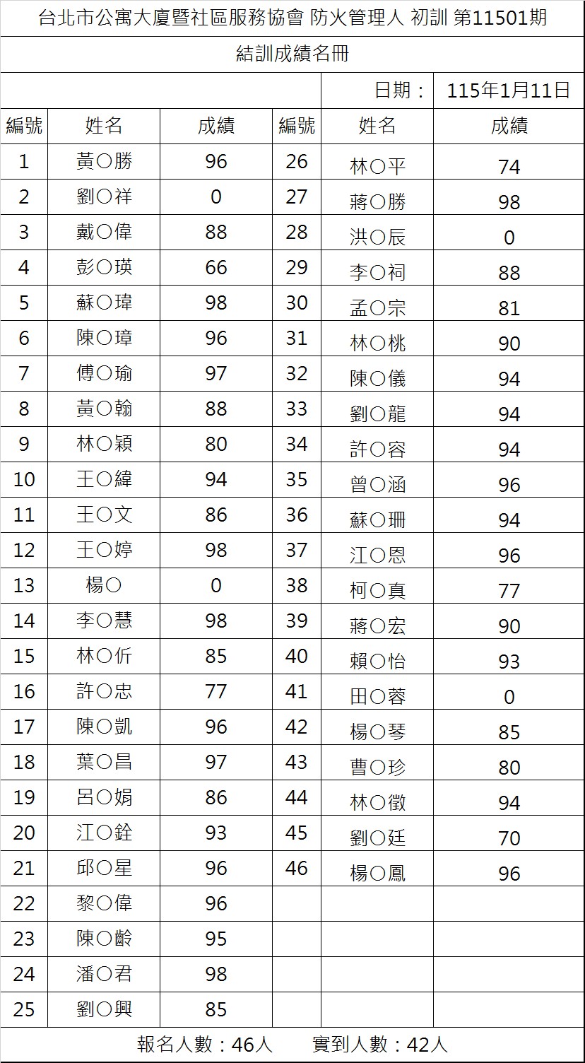 防火初訓成績11501期