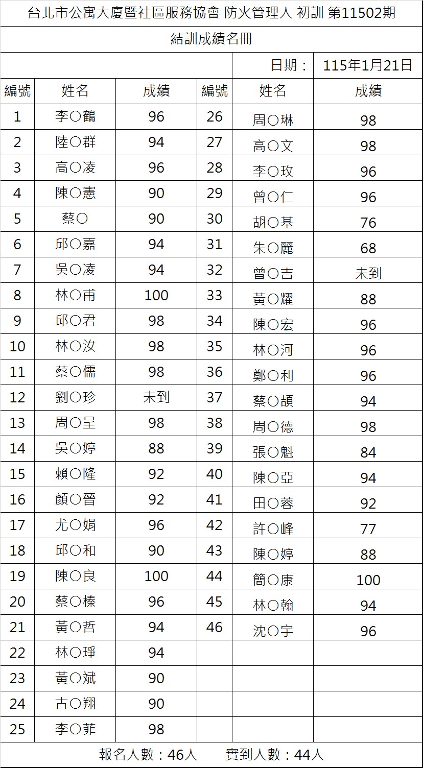 防火初訓成績11502期